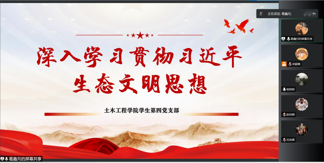 2022年9月7日21:00,永利yl23411员工第四党支部通过腾讯会议开展了以“深入学习贯彻习近平生态文明思想”为主题的线上学习。本次学习的主持人为党员葛鑫月同志,参加本次学习的有四支部全体党员。