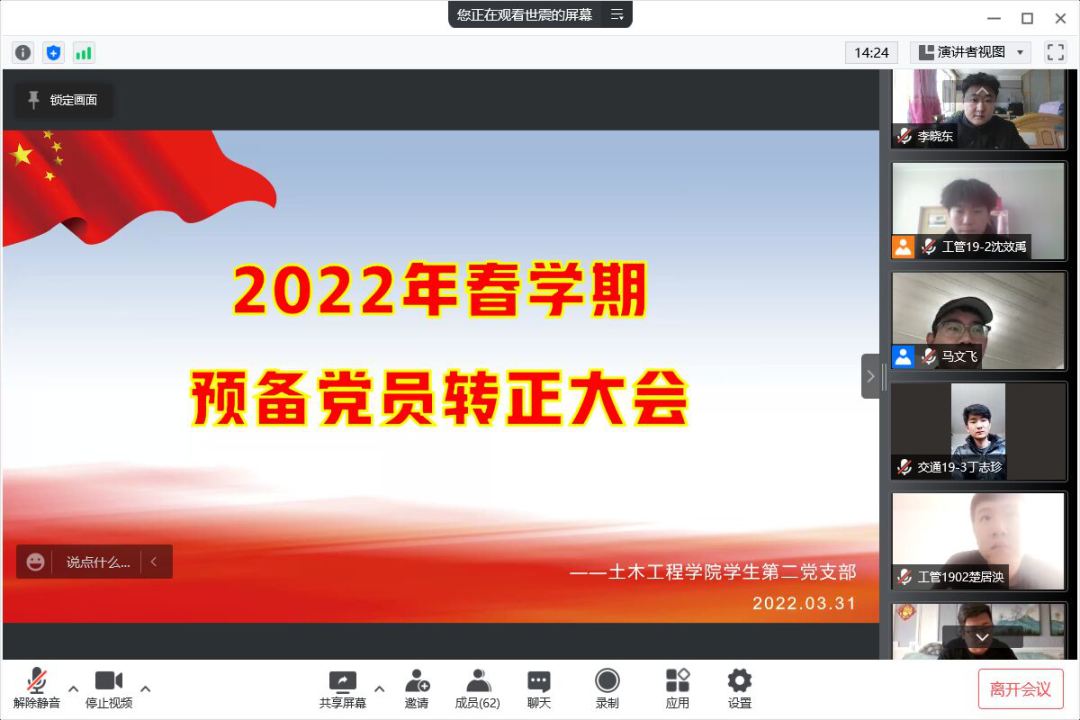 2022年3月31日14:30,永利yl23411员工第二党支部通过腾讯会议组织开展了预备党员转正大会,参加本次会议的有支部书记杨明明老师、全体党员及部分积极分子,本次会议由党员荣颖蕤同志主持。