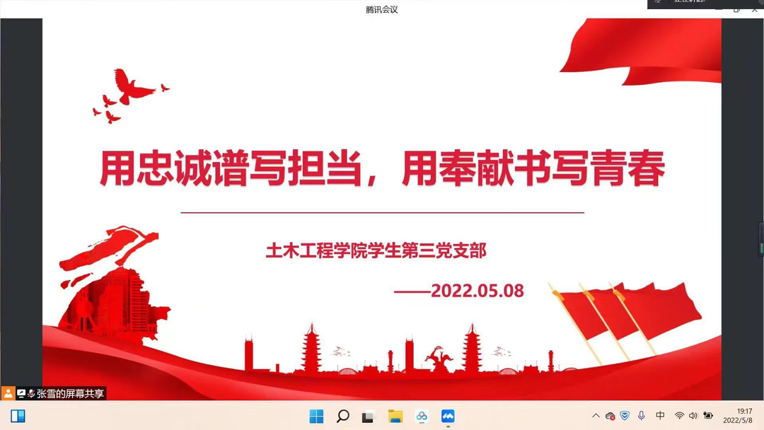 2022年5月8日晚19:30,永利yl23411员工第三党支部举办主题为“用忠诚谱写担当,用奉献书写青春”的接待。本次接待采用线上腾讯会议的形式开展。参加本次接待的党员有张雪同志、郝萌同志、王纳荷芽同志、张静同志。监督党员:姚亚东同志。