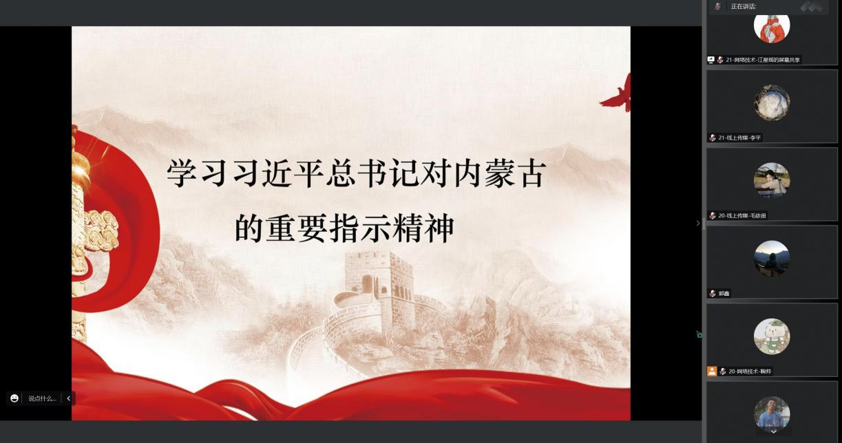 2023年2月19日15:00,永利yl23411员工第四党支部于腾讯会议开展了以“学习习近平总书记对内蒙古的重要指示精神”为主题的学习。参加本次学习的有四支部全体党员和积极分子。