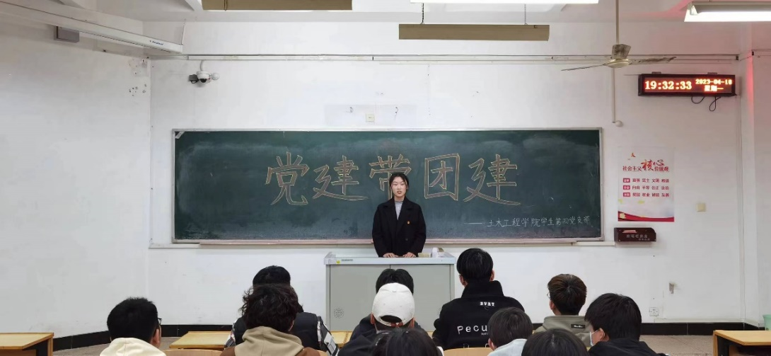 2023年4月,永利yl23411员工第四党支部在工管团支部组织开展了“党建带团建”的主题活动。其中,4月10日19:30,党员张淼琪、孙英敏同志于二教B110为21级工程管理二班团支部开展此项活动;4月12日19:30,党员刘昱莹、陈敏同志于二教B108为21级工程管理一班团支部开展此项活动。