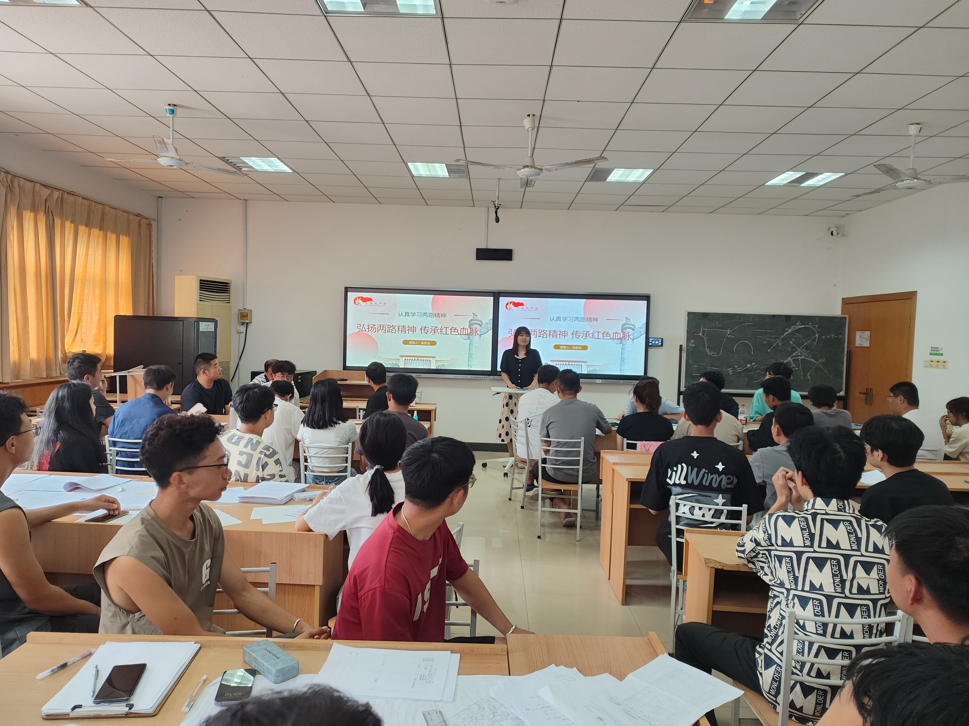 随后,由交通力学系教工党支部书记张新洁讲授《弘扬两路精神,传承红色血脉》专题党课。党课以“两路”精神为主线,从历史大视野来看待“精神谱系”,深刻阐述了“两路”精神的发源、“两路”精神的时代价值以及如何发扬“两路”精神。