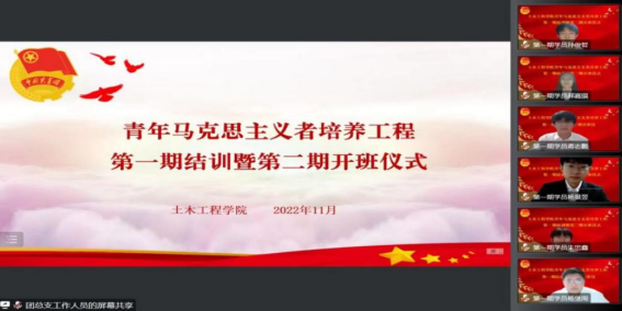 为深入学习宣传贯彻党的二十大精神,切实为党培养和输送一批具有“忠诚的政治品格,浓厚的家国情怀,扎实的理论功底,突出的能力素质,忠恕任事、人品服众”的青年政治骨干,永利yl23411于2022年11月16日晚18:30在线上举行了“青年马克思主义者培养工程”老员工骨干培训班第一期结训暨第二期开班仪式。公司党委书记郭海,公司党委副书记、副经理王晓东,学团办老师杨明明、汤伟、王艳、崔岩、贺凌飞,青马班第一期和第二期全体学员参加了仪式。