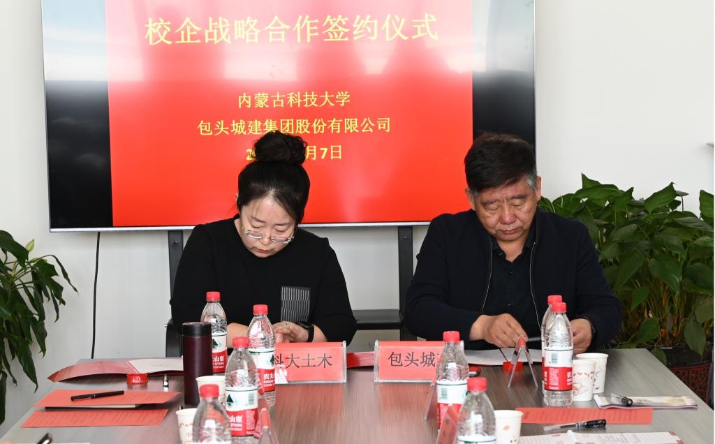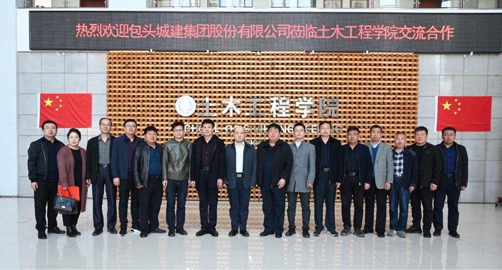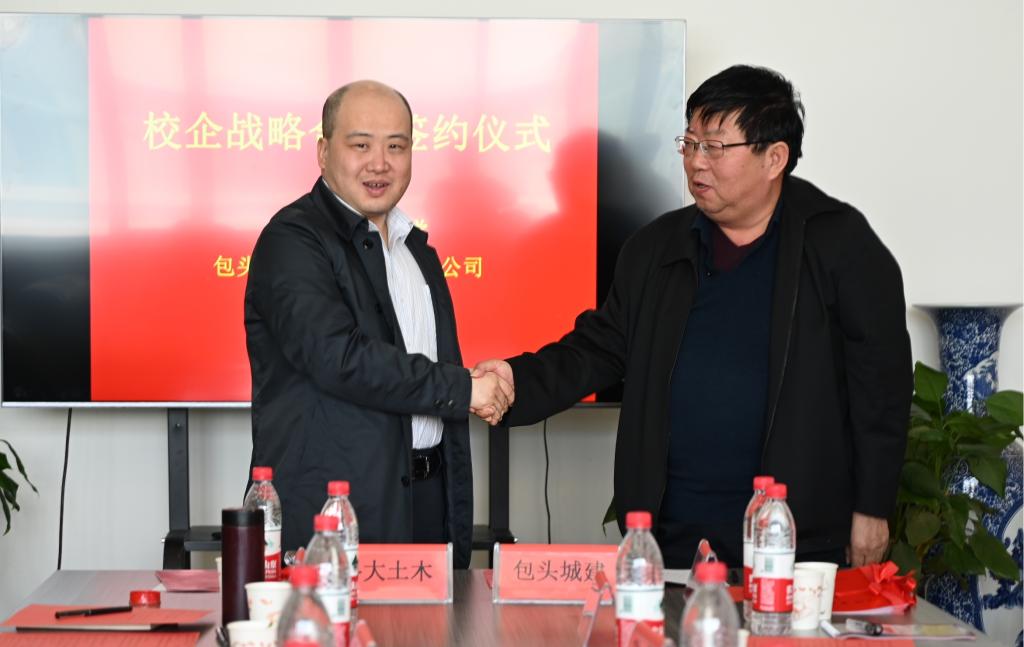 2021年4月7日上午,永利yl23411与包头城建集团股份有限公司“校企全面战略合作”签约仪式和“产学研基地”揭牌仪式隆重举行。包头城建集团股份有限公司董事长、总经理刘江,党委书记、副总经理孙成,纪委书记、监事会主席王华,总工程师李建占,总经济师李小刚,包头城建集团同力隧道有限公司董事长兼路桥公司经理闫履顺,包头市固废再生资源利用有限责任公司总经理兼生产技术部部长倪磊,综合办公室主任闫秉宇一行莅临永利yl23411;土木工程公司党总支书记、经理陈明,副书记、副经理佟振华、教授委员会副主任、教授薛刚,教授委员会委员、教授许有俊,教授曹芙波,内蒙古科大工程项目管理有限责任公司总工程师、副教授宋继强,副教授张玥,副教授游润卫等出席此次签约仪式。