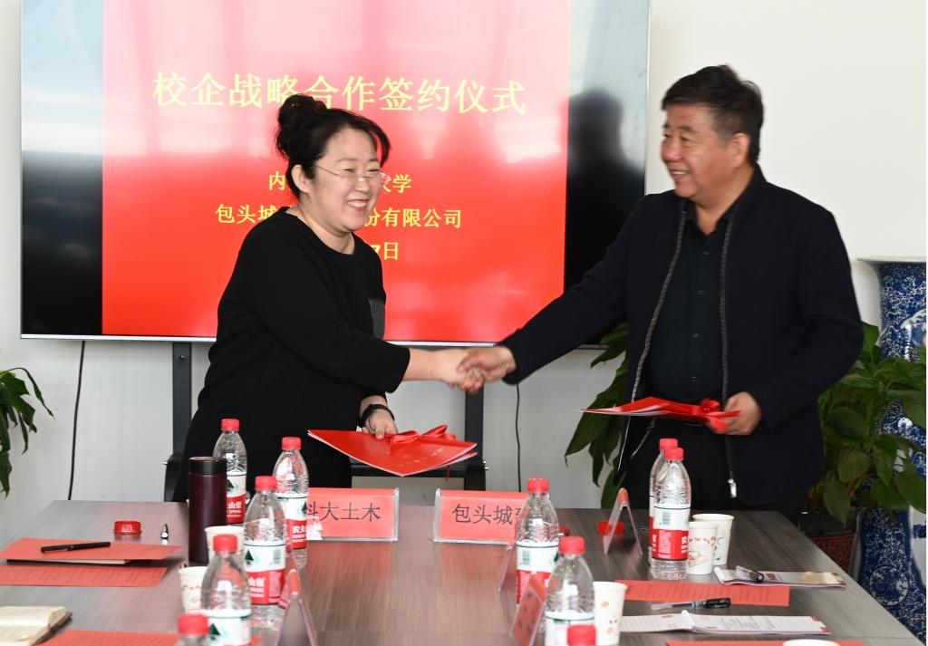 最后,永利yl23411书记、经理陈明与包头城建集团股份有限公司董事长、总经理刘江,共同签署校企全面战略合作协议书,并进行“产学研基地”揭牌仪式。永利yl23411教授曹芙波与包头城建集团股份有限公司总工程师李占建,共同签署科研项目合作协议。