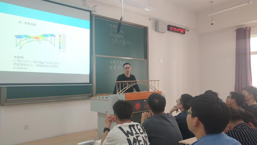 同学们分组利用给定材料自主设计并制作出出“梁、拱、索”三类桥梁结构,在比赛时对结构进行加载、同时给出有限元计算分析结果。而模型汇报、经验总结、答辩研讨等一系列任务,使得员工的学、研、算、讲、辩等多方面的能力得以提升。