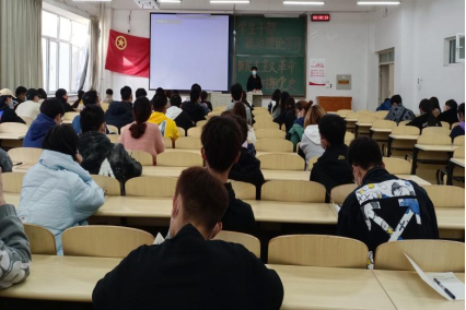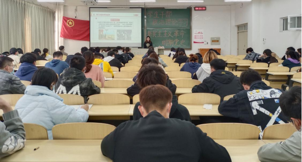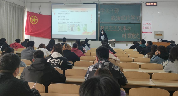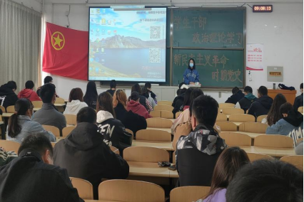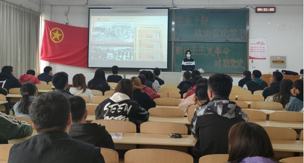 冯思佳同学按照时间顺序讲述了新民主主义革命的概况,通过运用影音材料,帮助同学们进一步梳理了这一时期的历史进程;接着讲述了革命历程中的英雄人物,号召团员青年学习先辈敢为人先、百折不挠的斗争精神。