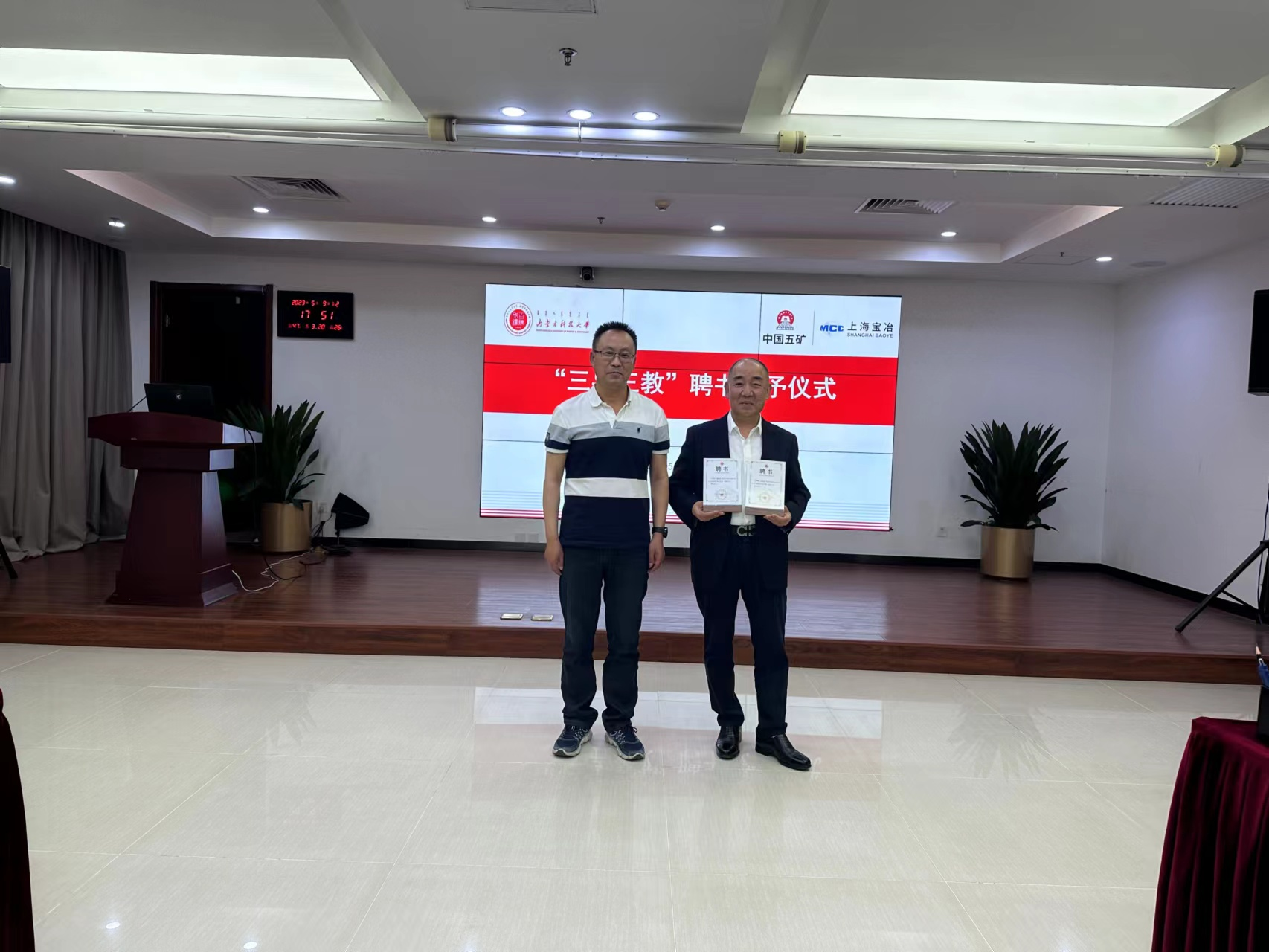 5月8日到5月11日党委书记郭海一行2人到宝冶集团北京分公司、中交路建华北分公司、中交三公局、中建交通总承包公司进行访企拓岗,并对裴海清等首批受聘 “三导三教”导师进行现场聘任。
