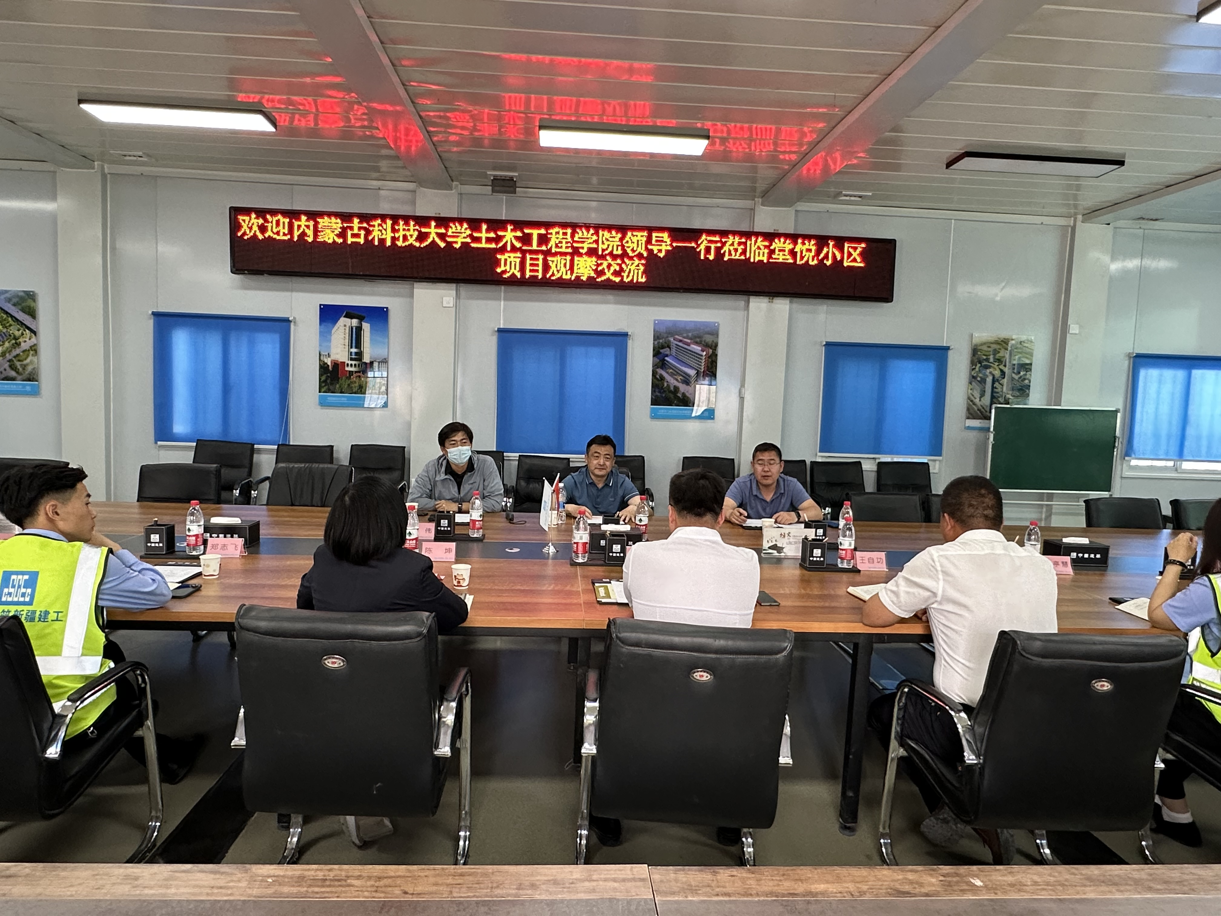 与中建新疆集团一公司堂悦小区项目班子进行座谈并与毕业生员工进行交流