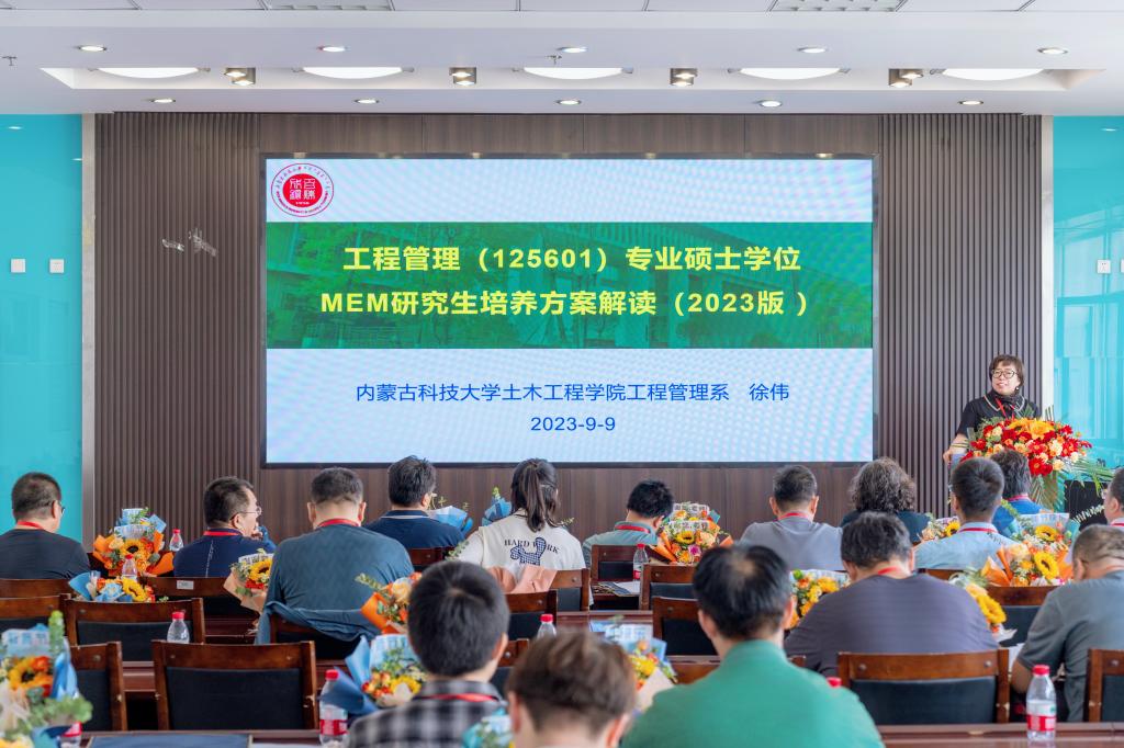 许有俊副经理介绍了学院学科情况并解读了《土木工程(085901)专业硕士学位培养方案》,徐伟教授解读了《工程管理(125601)专业硕士学位培养方案》,于景飞副教授就《公司产品过程与学位论文盲审办法》进行了解读。