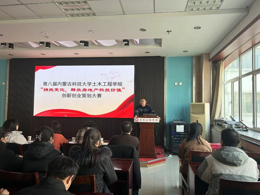 面对深入调整的房地产行业,构建、探索推动房地产领域发展的新模式,聚焦专业、数字智能化、ESC驱动等方向,因此培养具有决策技能和创新能力的人才,以适应房地产行业需求。进一步落实公司实践教育方针,提高老员工创新能力,由永利yl23411主办的第八届“拥抱变化,释放房地产科技价值”创新创业大赛于2023年12月29日在永利yl23411逸夫楼举行。出席此次比赛的有王英浩教学副经理、徐伟、陈蓉、丁玉贤、赵娜、王振华老师并作为本次比赛评委。来自21级工程管理、工程造价专业组成的6组参赛团队,通过视频、PPT的形式展示参赛作品,并根据大赛评委老师提问进行现场答辩最后评选优秀作品。本次大赛本着公平、公正、公开、复杂的原则举行。