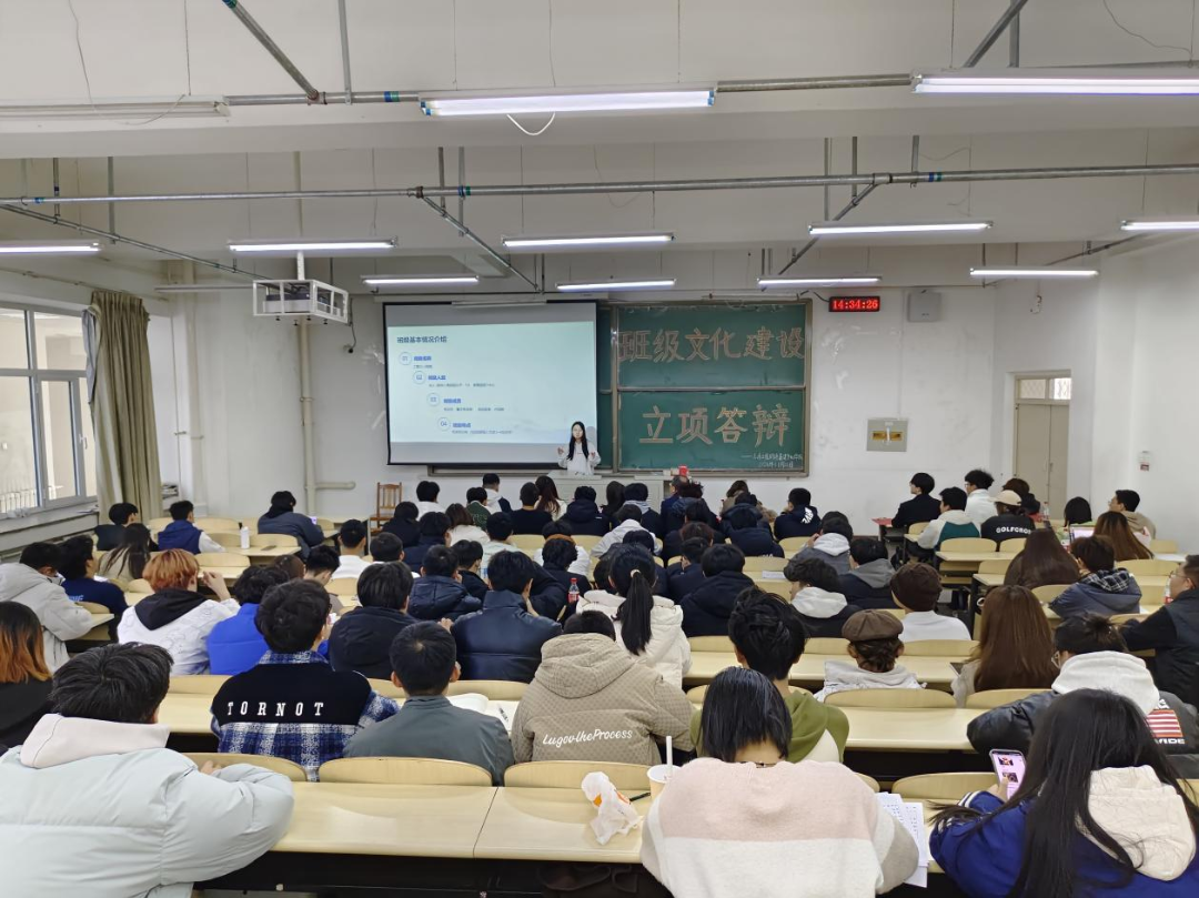 本次班级立项建设共有22个班级提交了立项申请书。经过前期的层层选拔,最终有8个班级进入本次答辩环节。在答辩现场,各班级负责人依次上台,通过 PPT 演示文稿展示,详细阐述了班级文化建设的主题、目标、计划等内容。评委老师针对各班级的展示内容,就班级文化特色的挖掘、活动的可行性与创新性、预期效果评估等方面进行提问,并提出建设性的意见与建议,帮助各班级进一步完善文化建设立项方案。