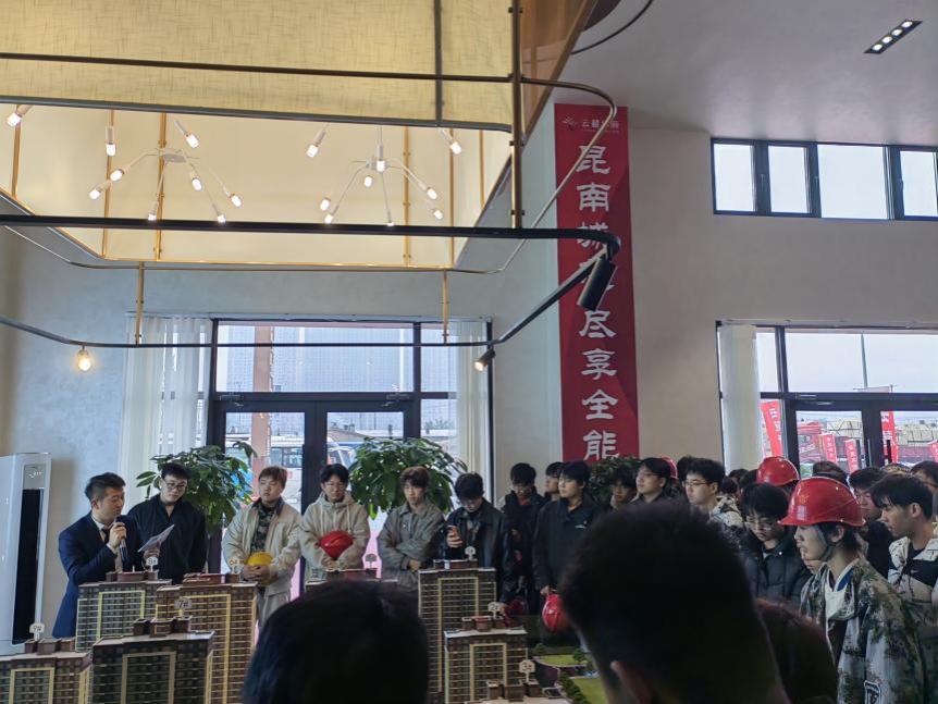 在云麓华府建设工地,高耸的塔吊与有序的施工面构成了一幅生动的建造图景。同学们跟随项目工程师,实地观摩了建筑主体结构的施工流程,从模板架设、钢筋绑扎到混凝土浇筑,每一道工序都清晰展现了房屋建造的核心技术与现场管理的严密组织,使大家对建筑工程的质量控制与标准化施工有了更为具象的理解。