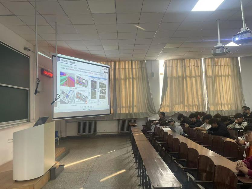 本次讲座由兴泰建设集团智能建造研究推广中心BIM工程师杨楠主讲。杨工程师硕士毕业于内蒙古工业大学建筑学专业,拥有五年BIM领域实践经验。讲座以“BIM技术在建筑工程全生命周期的应用实践”为主线,通过大型商业综合体、医院等实际项目案例,生动展示了BIM技术在碰撞检测、管线综合、施工模拟及运维管理中的创新应用。讲座让同学们深刻认识到BIM技术如何从设计工具延伸为项目管理的重要抓手,为未来掌握智能建造核心技术奠定了坚实基础。