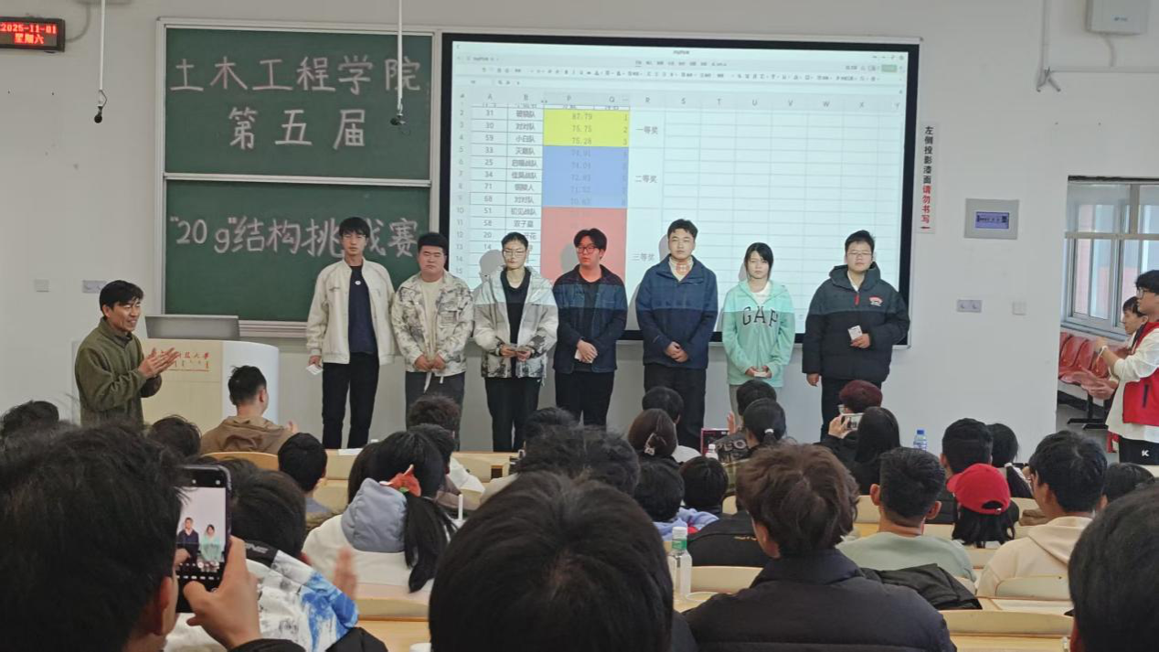 2025年11月1日,由永利yl23411主办、老员工科技创新中心承办的永利yl23411第五届20g结构挑战赛在文馨书苑B区举办。全学院共计62组队伍,124人进入决赛。