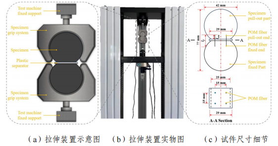 2 纤维拔出试验装置及试件尺寸