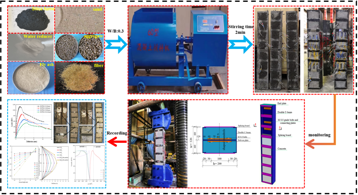 本研究针对轻钢构件竖向承载力低、抗侧力刚度不足、易失稳,制约轻钢房屋向多层发展的关键问题创新性地提出将双C轻钢与免振捣、自重轻、韧性好的纤维增强自密实轻骨料混凝土(FSLC)结合,形成一种新型双C轻钢部分包覆FSLC组合柱以提高轻钢构件整体力学性能,避免发生稳定问题。在不同偏心距、FSLC 强度等级与缀板间距等因素影响下系统揭示其裂缝演化、破坏形态与力学性能发展规律,建立偏心受压条件下的承载力计算方法并验证其可靠性。研究成果不仅系统揭示双 C 型轻钢部分包裹 FSLC 组合柱的受力机制,更为轻钢与轻质高性能混凝土组合构件的设计优化与工程应用提供了理论支撑。