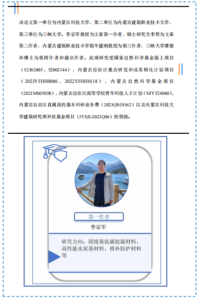 土木成果动态——工业与城市固体废弃物建材资源化利用团队李京军教授研究成果在Construction and Building Materials上发表