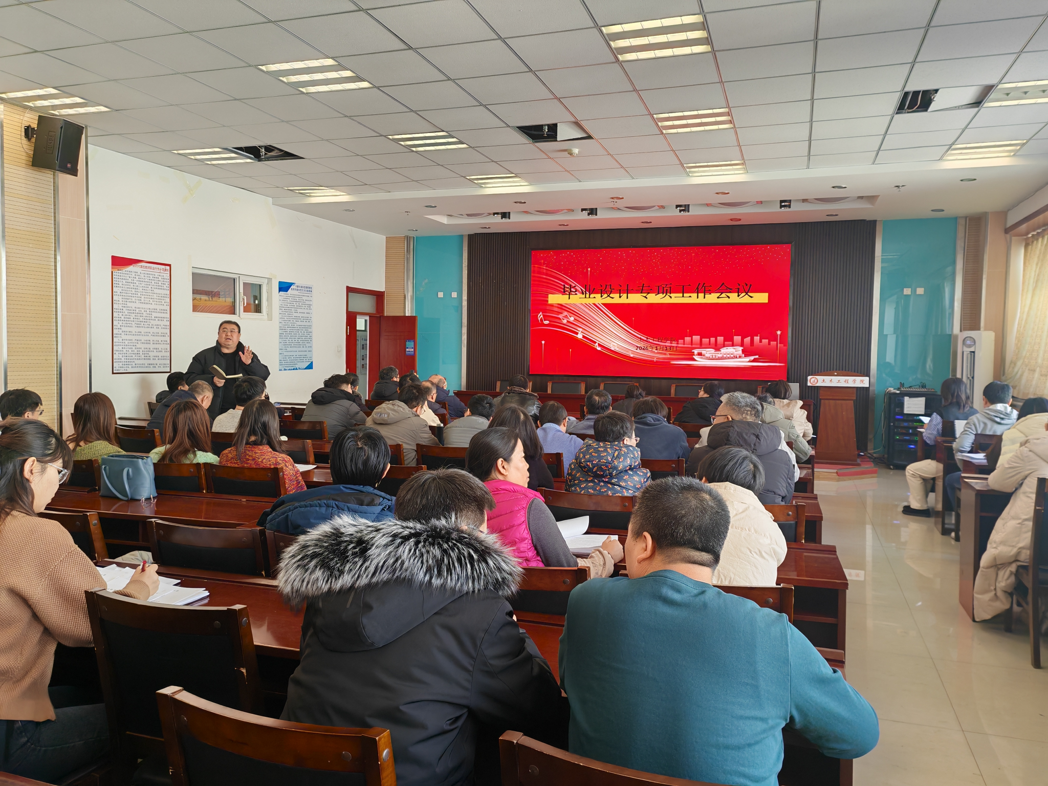 为全面落实OBE教学理念,切实保障高质量完成各类实践教学,1月13日上午,永利yl23411召开全院教师大会,专题部署2026届毕业设计工作。