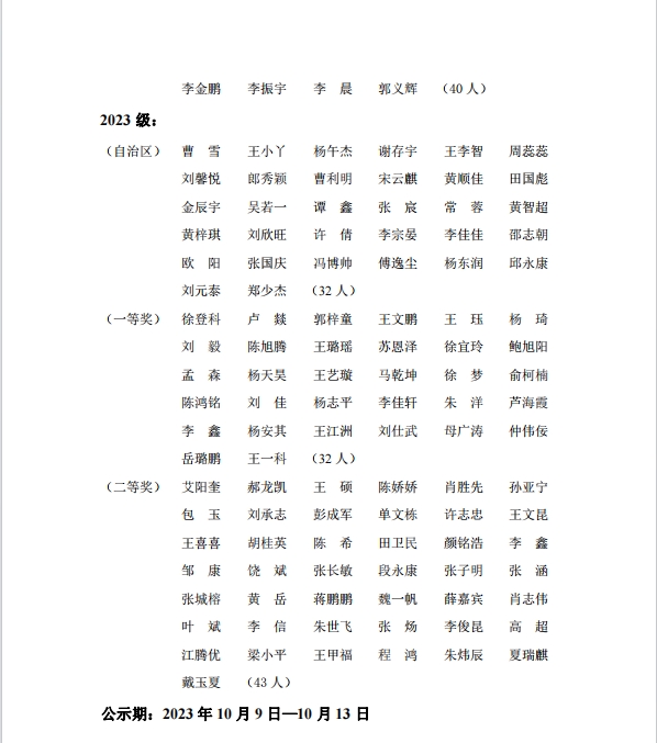 永利yl23411 2023年研究生奖学金公示名单