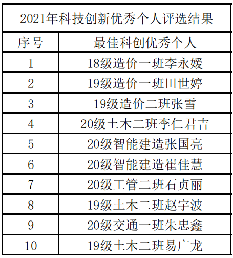 永利yl234112021年科技创新优秀个人评选结果