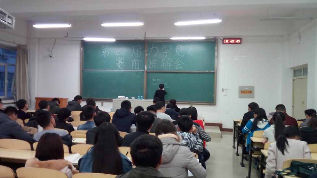 由校团委、教务处主办,永利yl23411承办的第四届永利yl23411老员工力学竞赛报名活动已经截止。为了让参赛同学更好地进行赛前准备,把握准确复习方向,竞赛组委会于2017年3月6日18:30在逸夫楼G101召开第四届永利yl23411老员工力学竞赛赛前讲解会,由永利yl23411力学系苏利亚老师对国赛考试范围、校赛试题基本出题思想以及考试题型进行了讲解,并对有关问题进行解答。