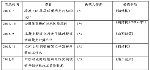 施工类部分代表项目有:1、中国动漫博物馆,“两向斜交双曲抛物面网状筒壳钢结构及节点试验”研究成果获得董石麟、崔俊芝、聂建国三位中国工程院院士验收通过,认为研究成果总体上达到国际先进水平,其中研发单元式双向斜交空间网格筒结构拼装技术、复杂日字形巨型环梁制作工艺等技术在国内外都属首次应用。本人为此工程技术负责人,该工程获得2016年度中国钢结构金奖。2、吉安体育中心游泳馆为中型体育建筑,屋盖为钢管桁架结构,平面为圆弧水滴形,长约130m,宽约96m。屋盖结构形式采用三维空间钢桁架结构,共设置12榀主桁架,5榀次桁架,外加收边桁架,其中11榀主桁架下弦管体内布置预应力索,预应力索的张拉吨位随其位置的变化而不同,本人为此工程的项目经理,该工程获得2018年度中国钢结构金奖。3、海口市五源河片区棚户区(城中村)改造项目—文化中心项目一期—C08地块体育场项目,总建筑面积约 90304㎡,体育场南北长约250m,东西长约268m,可举办全国性和单项国际比赛。西看台屋盖罩棚结构由上下压环梁结构体系和索桁架结构两部分组成,内环索直径为115mm,上径向索直径为90~100mm,下径向索直径为90~95mm,悬挂索直径为24~32mm,本人为此工程技术负责人,该工程获得2018年度中国钢结构金奖。