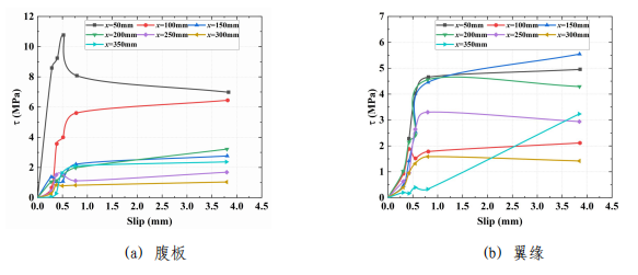 该研究结果表明,引入栓钉并未改变部分包裹再生混凝土结构构件的黏结失效模式。典型的黏结应力-滑移曲线分为四个阶段:无滑移阶段、滑移阶段、黏结失效阶段和残余阶段。通过带入以往研究者的数据验证了本研究所提出黏结滑移本构模型的普适性。从平均黏结滑移曲线可以观察到,随着再生混凝土强度从C35增加到C40再到C45,黏结强度的提升率分别从53.5%降至24.24%。这表明持续提高再生混凝土强度对于改善界面黏结行为既不高效也不经济。与无栓钉的部分包裹再生混凝土构件相比,配置了栓钉的构件表现出较强的延性。具体而言,配置单层和双层栓钉试样的延性系数在发生黏结损伤时分别提高了33.1%和36.4%。栓钉的数量是影响黏结强度的主要因素。当采用双层栓钉布置时,黏结强度分别提高了686%和665%。此外,虽然将栓钉焊接到型钢翼缘上有助于沿锚固区域实现更均匀的黏结应力分布,但也可能使同一锚固深度下腹板与翼缘之间的黏结应力差值增加(几乎翻倍)。因此,需要进一步优化栓钉的布置,同时在腹板和翼缘中布置焊钉可能是一个潜在的解决方案。最后,研究通过引入位置函数,建立了考虑黏结部位和锚固长度的黏结滑移本构模型,为提高部分包裹再生混凝土结构构件有限元分析精度提供了理论依据。