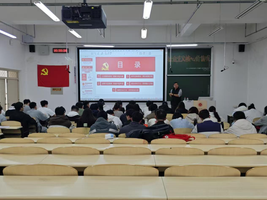 永利yl23411杨明明老师以“社会主义核心价值观”为主题进行授课。他讲解了社会主义核心价值观的内涵,并分析其重要意义。最后杨明明老师总结,社会主义核心价值观既是国家价值导向,也是青年行为准则,青年要加强学习践行,成长为可担民族复兴重任的时代新人。