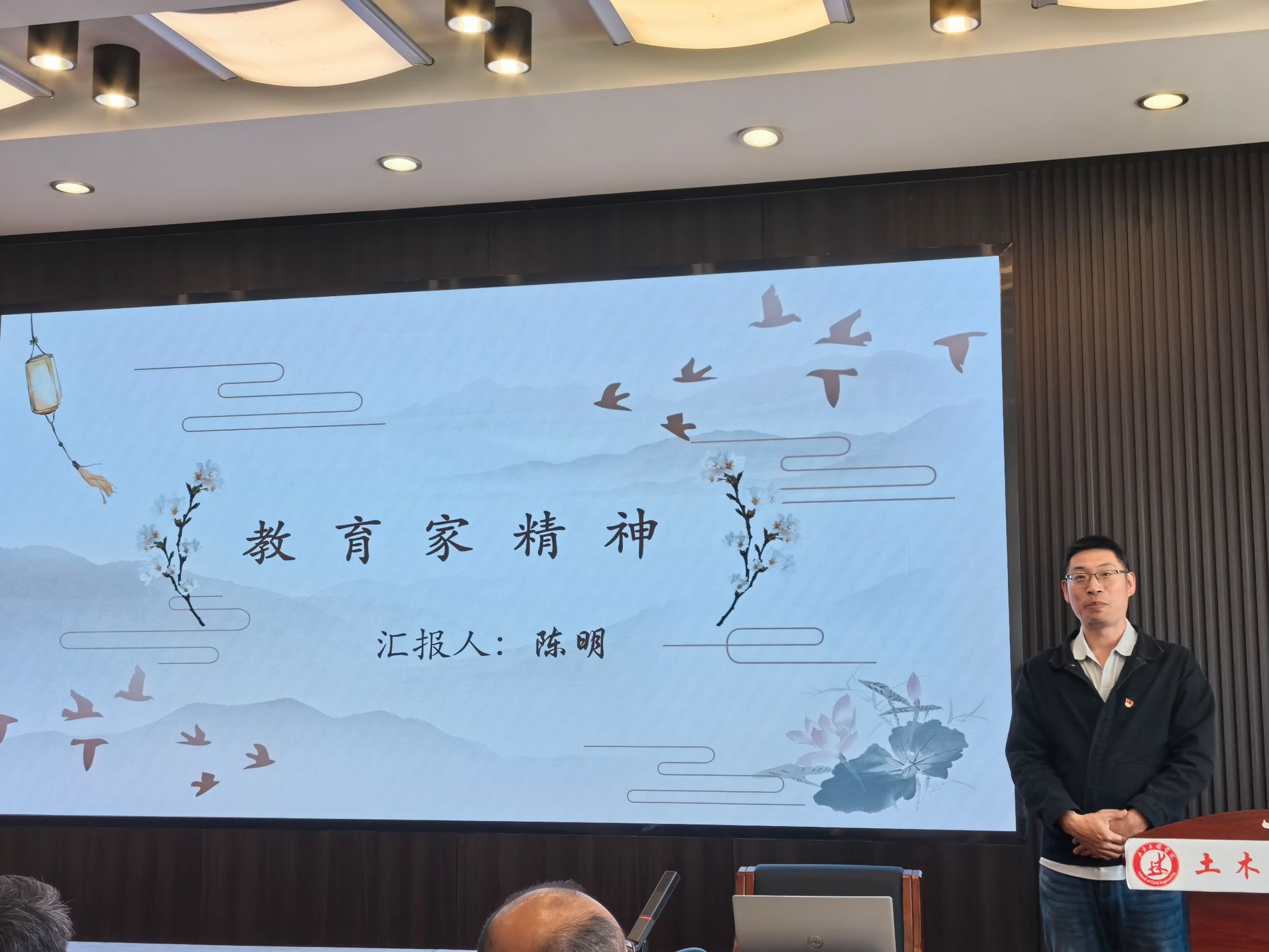 2025年4月28日上午,永利yl23411工会委员、基础力学部陈明老师,在逸夫楼B404开展了一场以“教育家精神”为主题的精彩报告。全院教师齐聚一堂,共享这场思想盛宴。