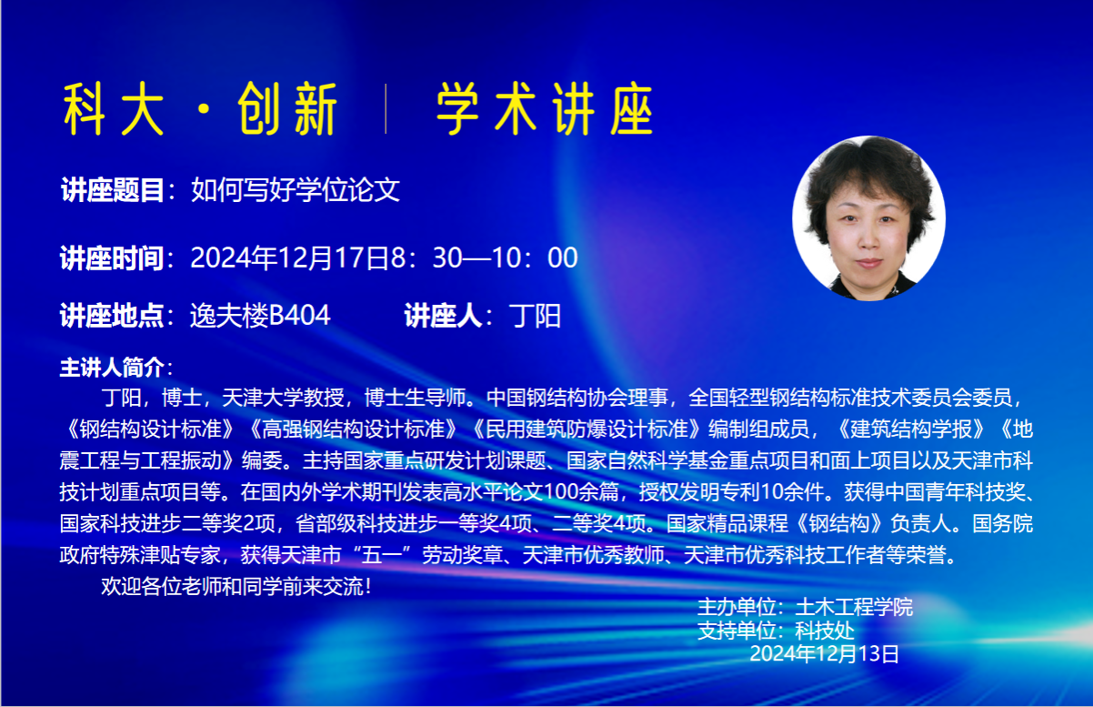 讲座时间:2024年12月17日8:30—10:00