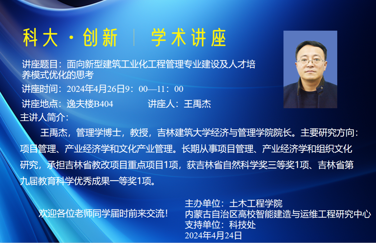 讲座题目:面向新型建筑工业化工程管理专业建设及人才培养模式优化的思考
