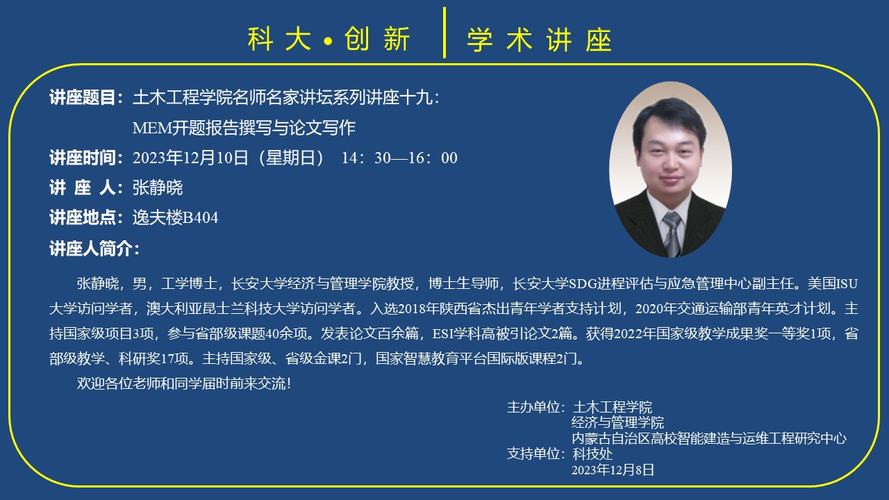 时间 2023年12月10日(星期日)14:30-16:00 地点 逸夫楼B404