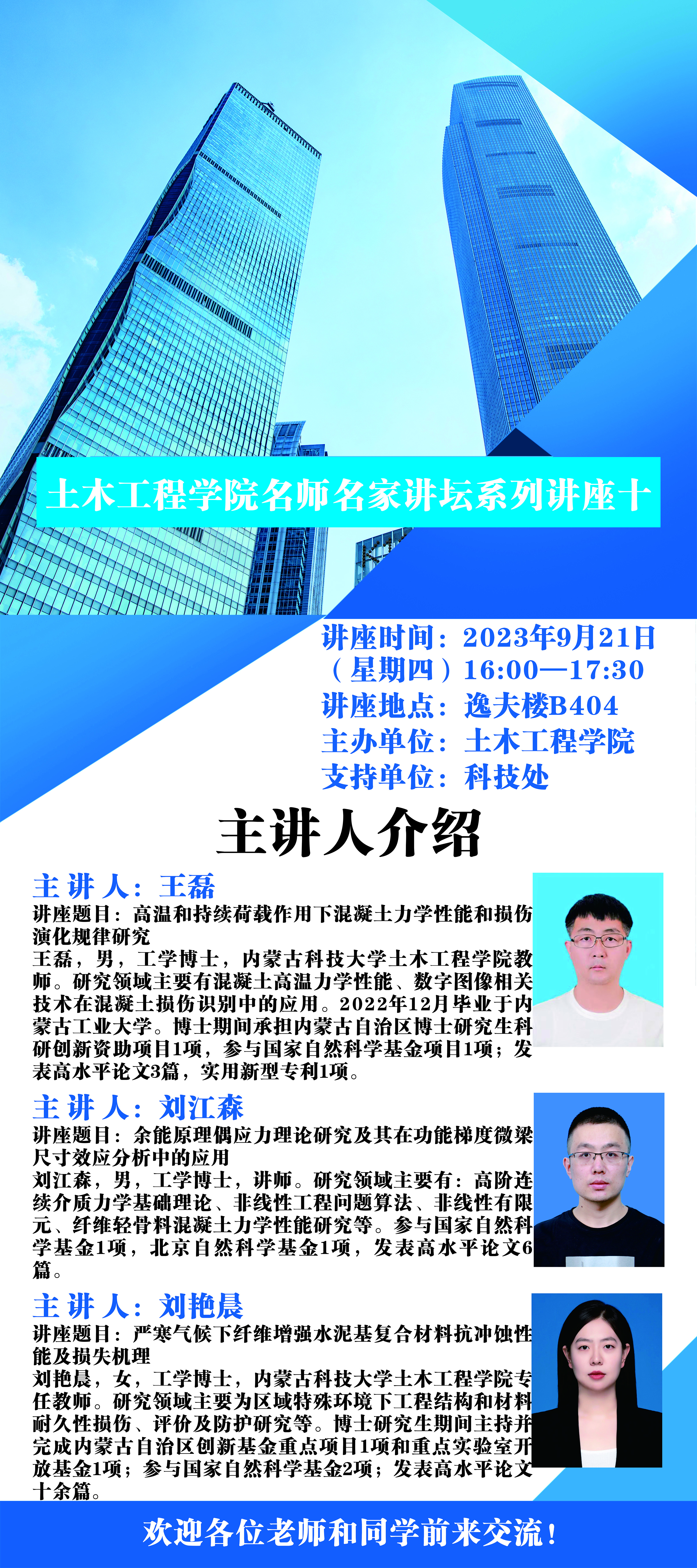 讲座题目:严寒气候下纤维增强水泥基复合材料抗冲蚀性能及损失机理