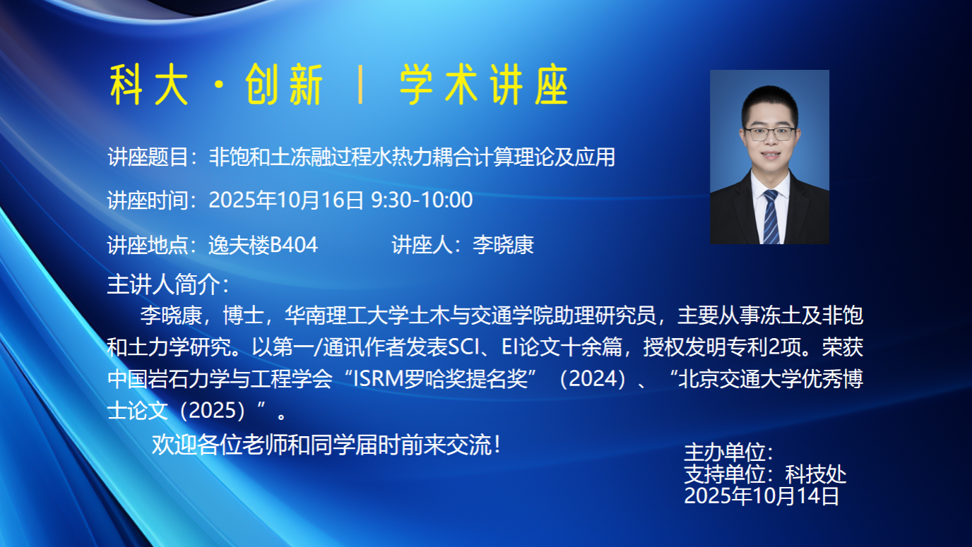 讲座题目:非饱和土冻融过程水热力耦合计算理论及应用