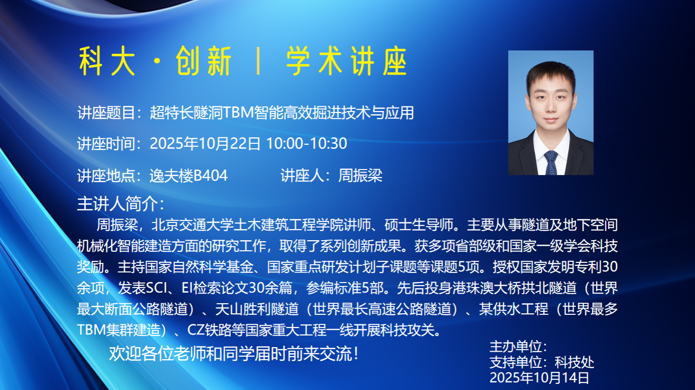 讲座题目:超特长隧洞TBM智能高效掘进技术与应用