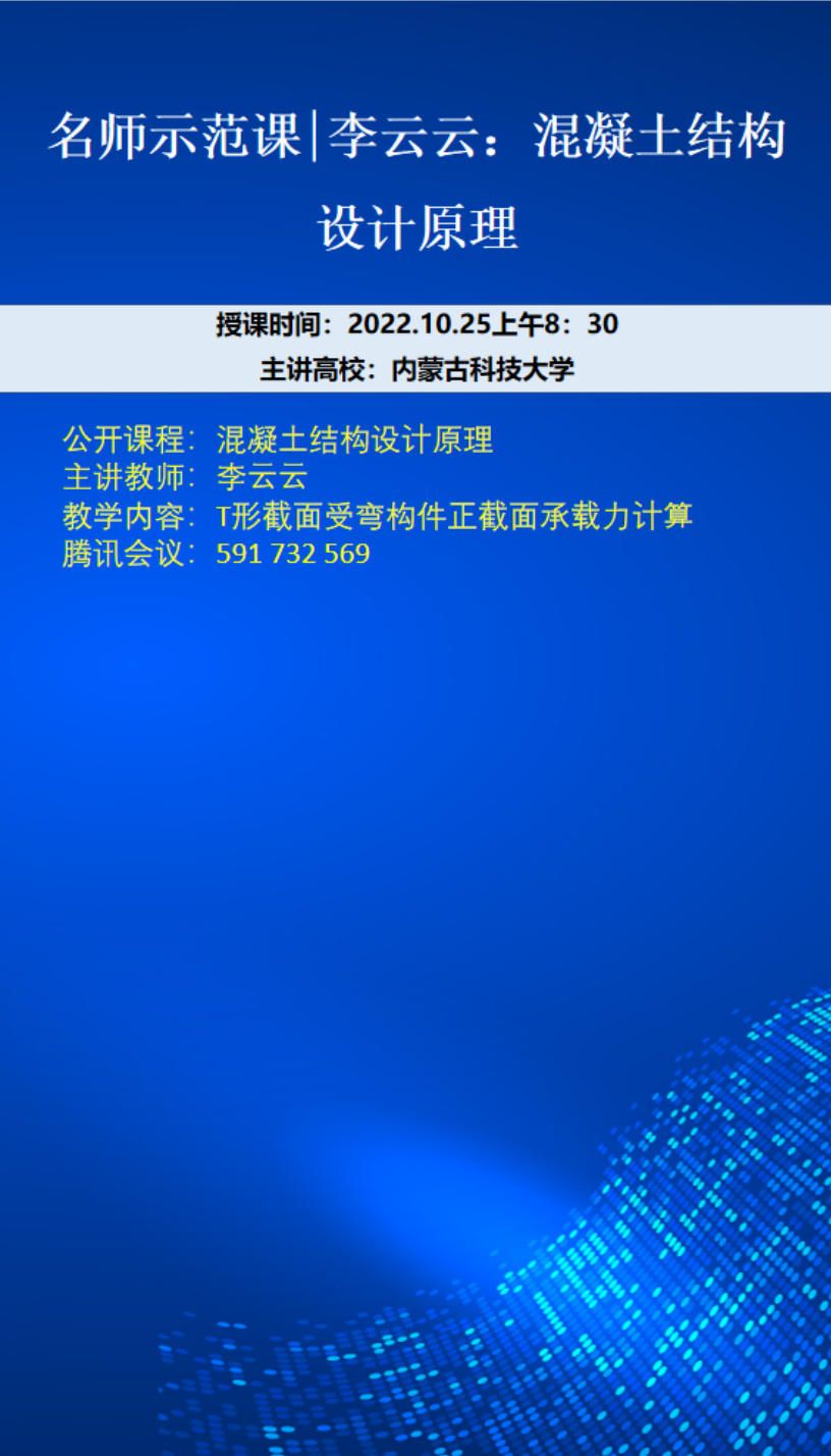 2022年10月25日上午,土木工程专业虚拟教研室名师示范课系列活动迎来混凝土结构设计原理专题课程。永利yl23411李云云老师以"T形截面受弯构件正截面承载力计算"为教学内容,通过腾讯会议平台呈现了一堂精彩的专业基础课教学示范。